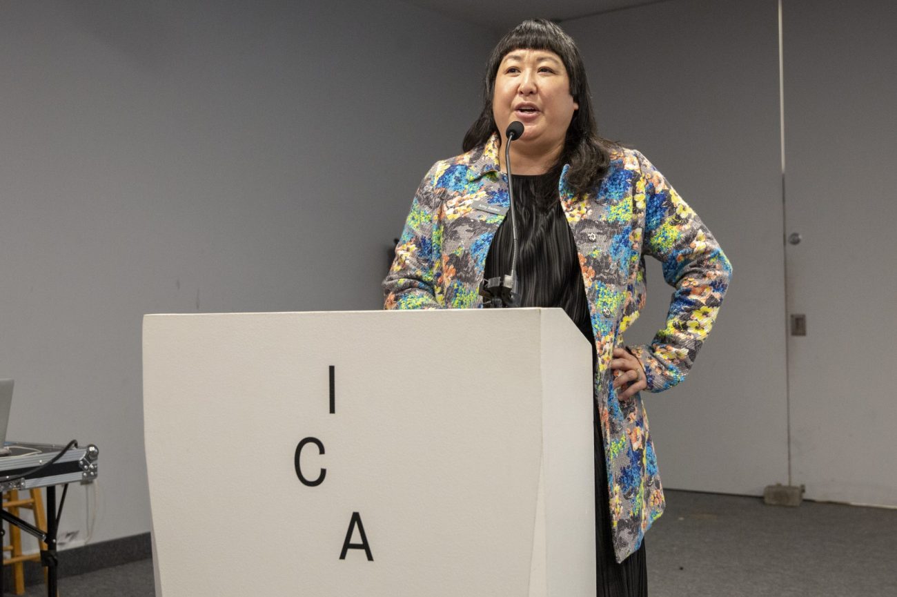 Such is the case in three new installations comprising the ICA’s spring/summer 2019 exhibition season, which opened Friday, April 26, as friends and supporters of the ICA flocked to campus for a special members’ preview and opening reception. Amy Sadao, Daniel W. Dietrich, II Director of the ICA, offered remarks to welcome guests and introduce the artists and curators behind the new exhibitions.